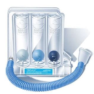 家裡若有胸腔物理治療常用的誘發性肺量計(Incentive spirometer):如triflow或coach,也可以把它拿來當作橫膈呼吸運動的練習裝置。這兩者皆提供了很好的視覺回饋,但要小心不可過度由頸部或胸口呼吸產生代償。